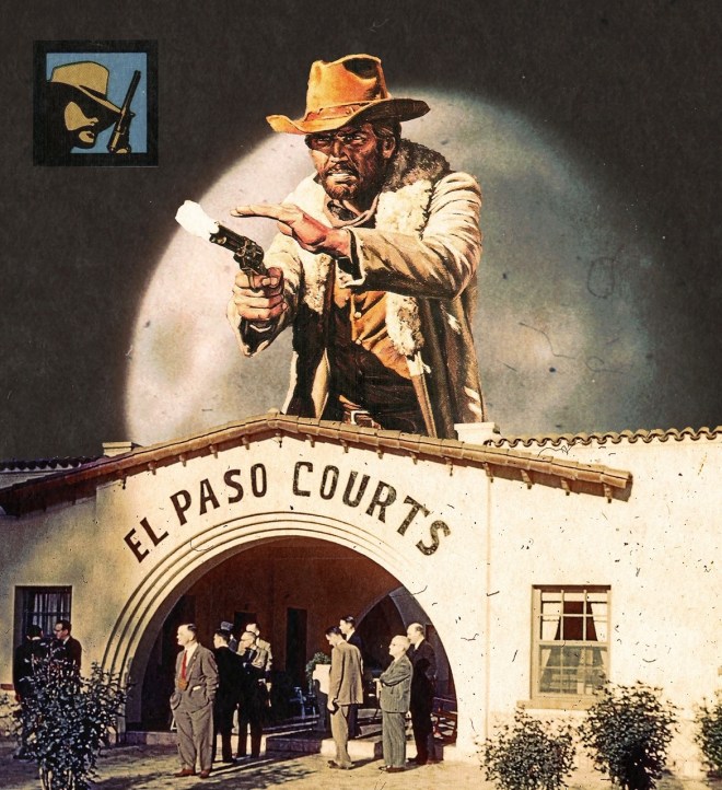 If one word could summarize the opus of visual artists of Rob Miller, it would be “pastiche.” Each photo explicitly pays homage to a certain era of Americana; saturated with references to literary and musical genres. The scenes depicted in these are creative regurgitation of popular motifs and styles, but blended together and arranged to create something completely new. His image “The Adventures of Johnny Justice Vol.4” is defined by a large gunslinger from the Wild West, the bullet barely out of the barrel of his gun, as he stands over a courthouse with an enlarged image of the moon looming in the background. It’s as if Miller melted down the best parts of films like “The Good, the Bad and the Ugly” and “LA Confidential” and put them on a film poster from the ‘60s. The moon is deeply reminiscent of the cover of blues guitarist Mighty Joe Young’s eponymous 1976 album.